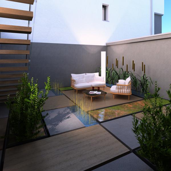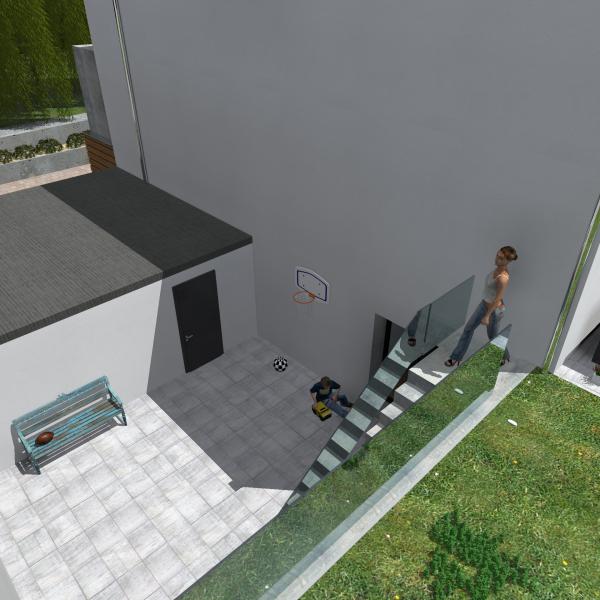 Rez inférieur: Entrée avec un spacieux vestibule - local technique - buanderie, salle de jeux et le box pour une voiture - (patio pour la villa 8b)