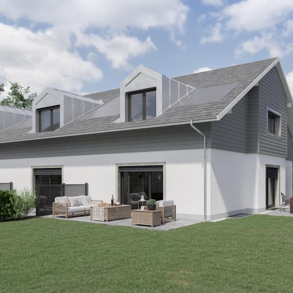 Les villas sont dotées d’un chauffage commun de type « pompe à chaleur ». Le local technique se situe au sous-sol mitoyen de celui de la villa B (voir le plan du sous-sol de la villa B). Les compteurs (chauffage & eau chaude) sont individuels. Des panneaux solaires sont prévus en complément pour la production d’eau chaude. Trois places visiteurs privatives à disposition.