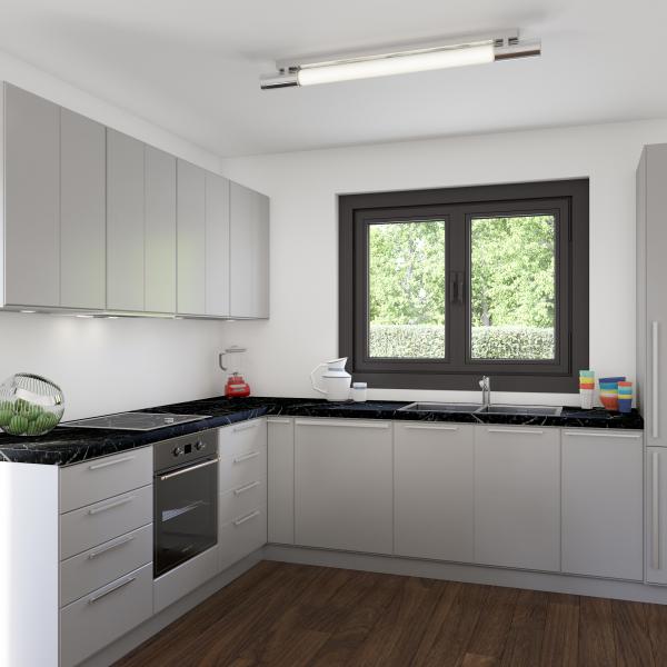 Rez-de-chaussée: Hall d’entrée avec penderie, toilettes visiteurs, accès à la cuisine entièrement équipée, séjour/salle à manger avec deux baies vitrées donnant accès à la terrasse et au jardin.
